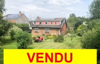Maison 4 façades: grand séjour, salle à manger, cuisine, salle de douche, 2 chambres, possibilité aménagement grenier (90m²), jardin, parking.